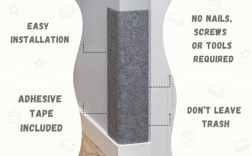 - Easy Installation: securely secure the scratching post with four adhesive strips, which makes it compact and does not take up additional space. Create a territory for your cat.